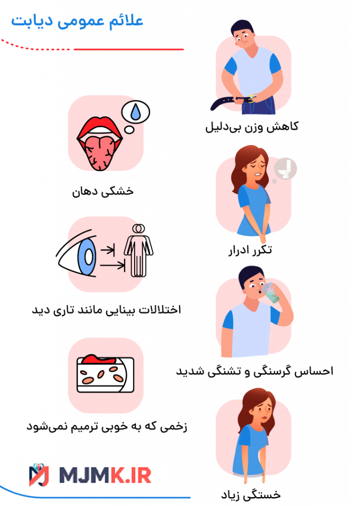 یکی از خدماتی که mjmk.ir ارائه می دهد مشاوره با بهترین دکتر آنلاین هر تخصص است. برای تشخیص دیابت و درمان به موقع آن می توانید از خدمات مشاوره با دکتر آنلاین غدد، دکتر آنلاین چشم ، به صورت تلفنی ، تصویری و متنی در ارتباط باشید.